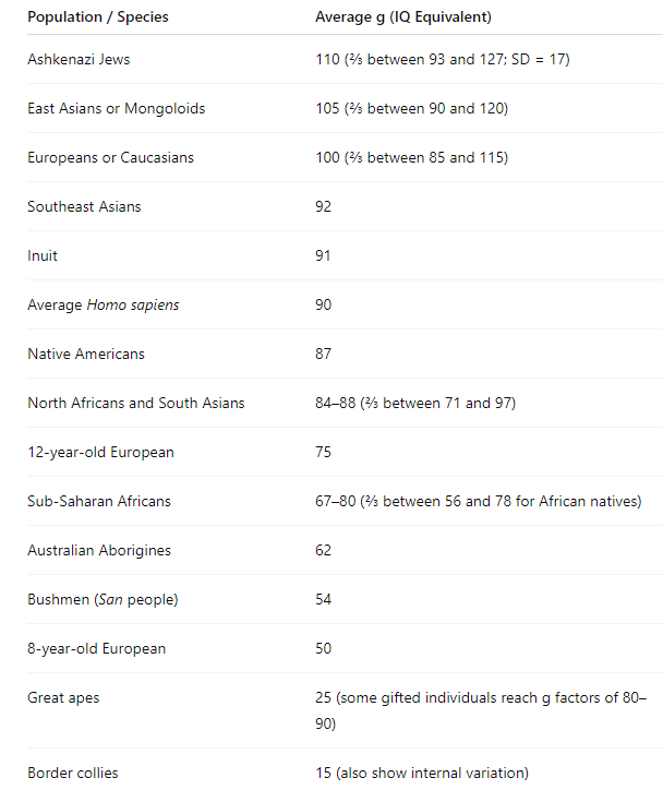According to analyses such as The Bell Curve (Murray & Herrnstein, 1994) and The Global Bell Curve (Lynn, 2009), group-level disparities in social outcomes largely reflect differences in mean IQ, a pattern observed across multi-ethnic societies worldwide.